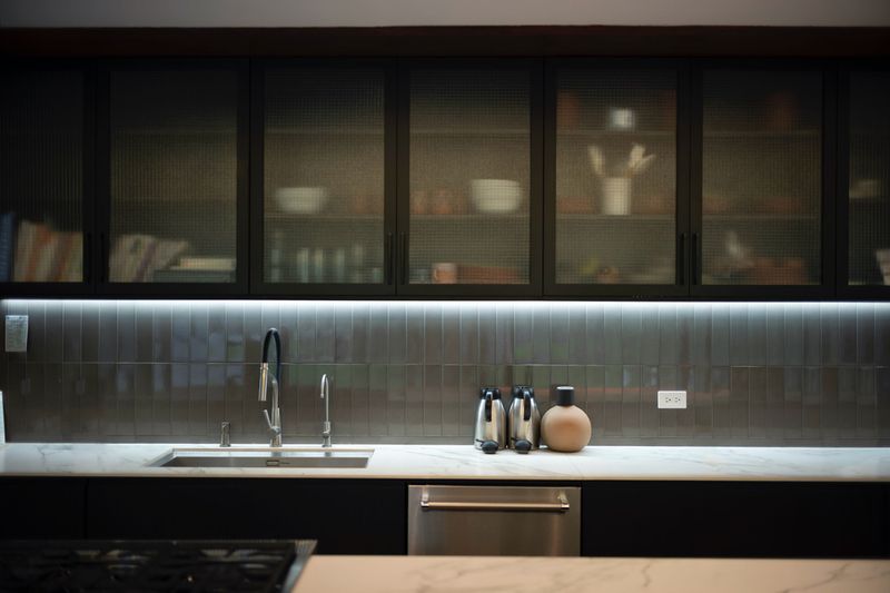 À une extrémité du volume, l’entrée principale s’ouvre sur un salon spacieux avec une cheminée, un piano et un coin repas. Une enceinte en bois abrite un bar et une zone de stockage, servant à détourner les vues du jardin. Adjacent à la salle à manger, un volume en pisé, ou tapia, encadre un garde-manger, une buanderie et une salle de bains pour les invités, séparant le salon principal de la cuisine et de la pièce de vie. Une structure sur mesure abrite une partie de la cuisine, ainsi qu’une bibliothèque avec télévision et un petit poêle, bloquant ainsi la vue depuis le golf et les réorientant vers le jardin et la piscine.