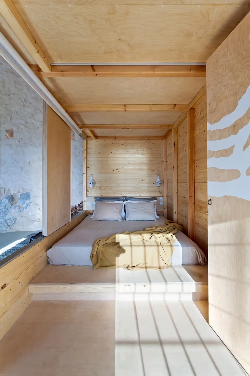 La transformation intérieure est tout simplement remarquable. L’espace, autrefois centre animé de la vie communautaire, a été réinventé en un espace de vie flexible. L’ajout d’une structure autoportante en bois introduit des dortoirs sur trois niveaux sans compromettre l’essence historique du bâtiment. Cette approche modulaire garantit non seulement la polyvalence mais respecte également l’architecture voûtée d’origine du bâtiment. Renforçant encore son adaptabilité, la citerne a été transformée en un espace de vie autonome, démontrant l’engagement de Z-LEVEL en faveur de conceptions innovantes et réversibles.
