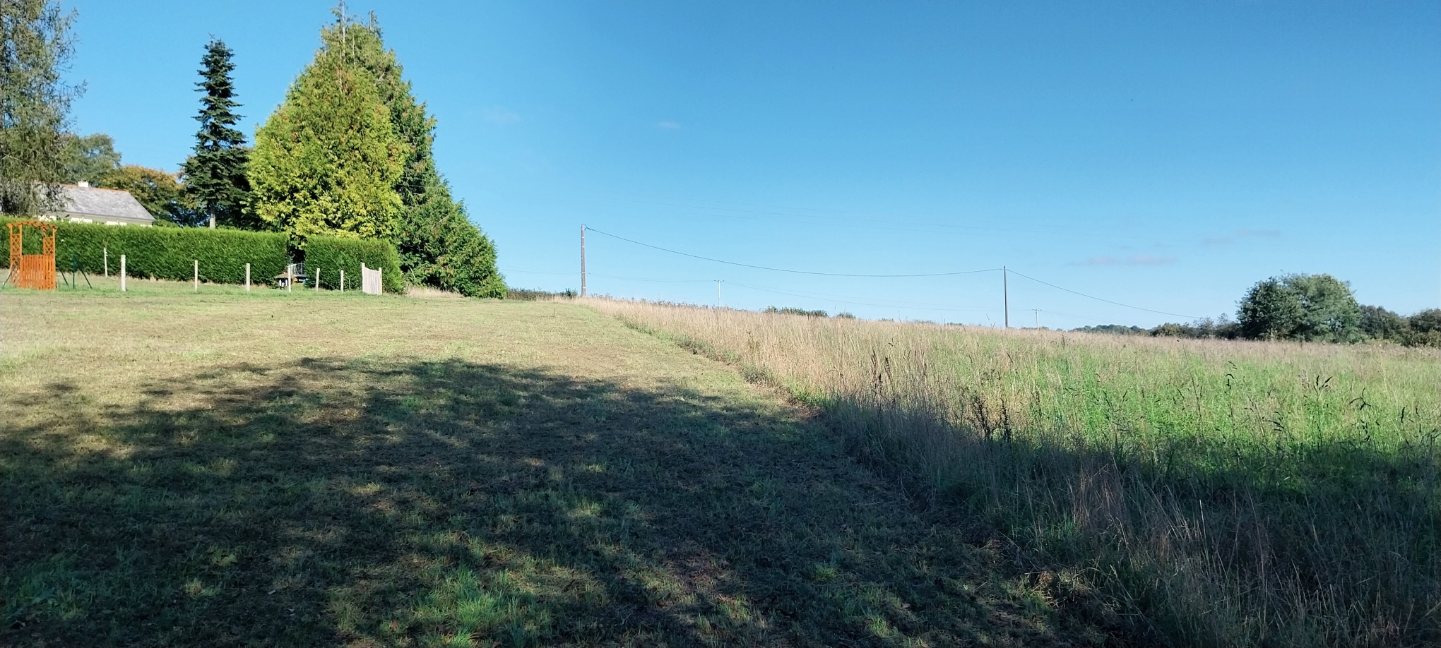 Terrain actuellement en état de jardin engazonné et arboré (autour de la maison) et de prairie, comprenant également une haie bocagère, une partie boisée, et bordé par un ruisseau. Idéal pour pâture pour chevaux, petit élevage, ou conversion maraîchage, horticulture, apiculture, etc., ou pour projet de vie en autosuffisance.
