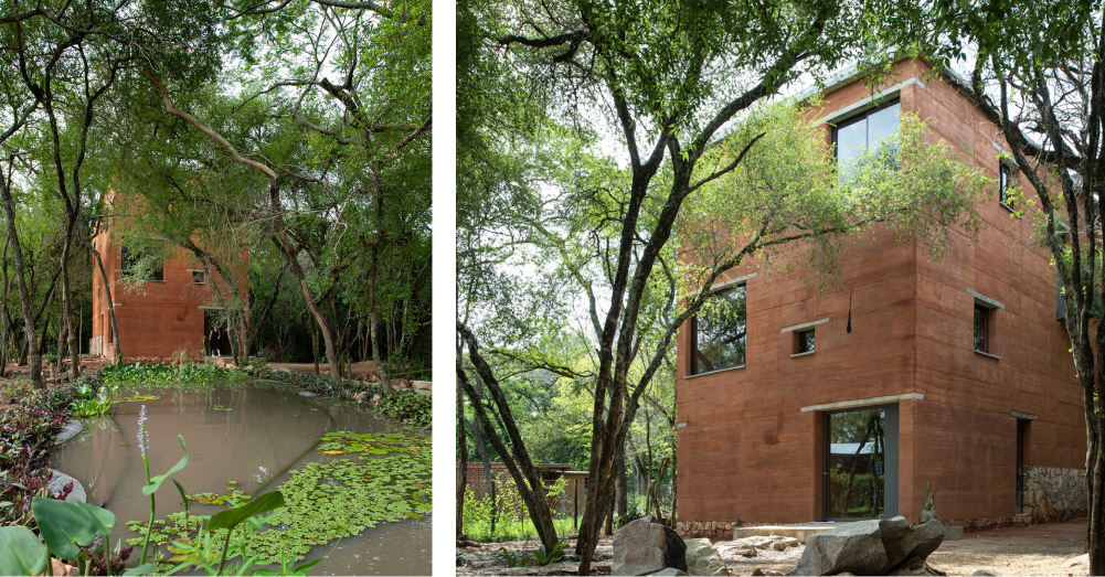 L’énergie géothermique superficielle, les piscines naturelles qui décantent les eaux grises et noires et le feu comme élément principal du noyau central sont d’autres éléments essentiels de cette expérience de construction élémentaire – le lagon naturel en réponse à un sol peu absorbant.